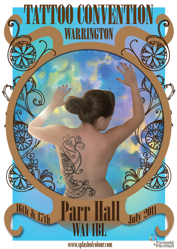 I would paint on my friend and take some images. This turned out really well and I was happy with the imagery that I got. Then put them on to the computer for editing. I looked at several tattoo convention poster that had already been designed. I looked at each one and picked out what I liked and what I didn’t like to get ideas of what I wanted my poster to look like. I found out that using more than two font styled made the poster look less professional and several other things I wouldn’t have on my poster. I started the development of my poster it took me a while to design the poster how I wanted but I got there in the end. I started off by doing a simple background. I chose which image looked best from the photo shoot I did with my friend and her back design. I then added this to the poster and work around it. I drew up some vector imagery to add depth to my poster. I also added the tattoo design that I drew up because I had previously scanned that into the computer so I could add it to my work. I got my final poster and I was very pleased with the final outcome. |