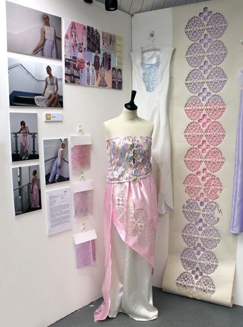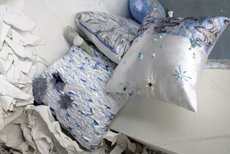 Rochelle Reid - A Touch of Frost After looking and researching into other theme options I narrowed my choices down eventually resulting in A Touch Of Frost being my preferred to the various ways I felt I could take the theme. The aim for this assignment was to research, develop and individually create well thought out designs and outcomes. Due to my interests and goals I decided to focus on working towards producing an interior outcome based on my chosen theme. This meant looking into various types of interiors and the techniques used to create them, from this I was able to recognise my interest in bolder more theatrical interiors rather than the domestic kind. It became apparent to me that choosing this direction left more room to explore not only layouts but also techniques and styles In order to ensure I had a clear understanding of my theme and how I wanted my outcomes to be I researched into various different ideas and styles. This began with the type of items, techniques and materials typically used in interiors during the winter season. Researching into the Northern Lights and Ice Hotels was where I primarily gained the thought to create a more interesting theatrical interior design. As well as this I felt it would be interesting to experiment with water and ice, by collecting natural items from the outdoors such as leaves and flowers I placed them in water and then in the freezer to trap them in ice. For my A Touch Of Frost Inspired project theme I planned to ensure I incorporated multiple, fascinating, creative textile techniques and designs. My intention was to explore and research into techniques that combined elegance with structure. By looking into the work of Amanda McCavour I discovered a way in which I could do this using a water dissolve textile technique. Relating to the shiny surface of ice I became intrigued in the beading and crystal work of Sebastian Barilleau. It was Barilleau’s Alien perfume crystal display that inspired the thought to introduce my own form of crystals in my interior ideas. I took this as an opportunity to create and grow my own crystals. I was very focused on making sure I managed my time well throughout the entire project, this led me to create lists of tasks with guidance and personal deadlines for when they should be completed
