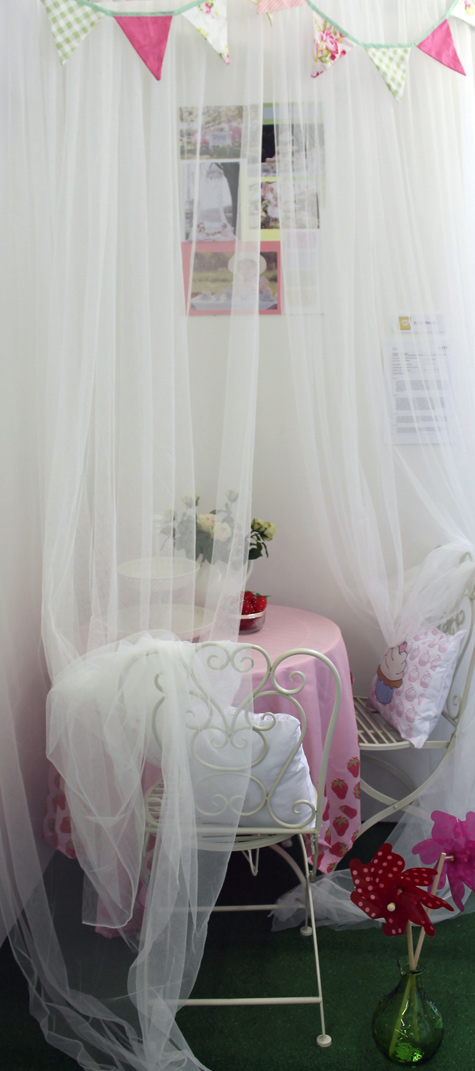 Emily Mackay - Tea Party For my final major project my theme is Tea Party, Due to the theme I had chosen having such a large choice for which path I wished to go down I spent time looking into different types of tea parties such as the Boston Tea Party as well as Alice In Wonderland. This is where I decided I would base my FMP around traditional children’s tea parties, meaning I could have a lot of fun when creating my exhibition. I researched what would be included so that I could decide what outcomes I could create myself. I chose to create a tablecloth for my table, two cushions for each chair, bunting, a canopy and felt strawberries and cakes. I decided I would set my exhibition up as if it was outside on the lawn, using fake grass as my base and placing my outcomes on top.