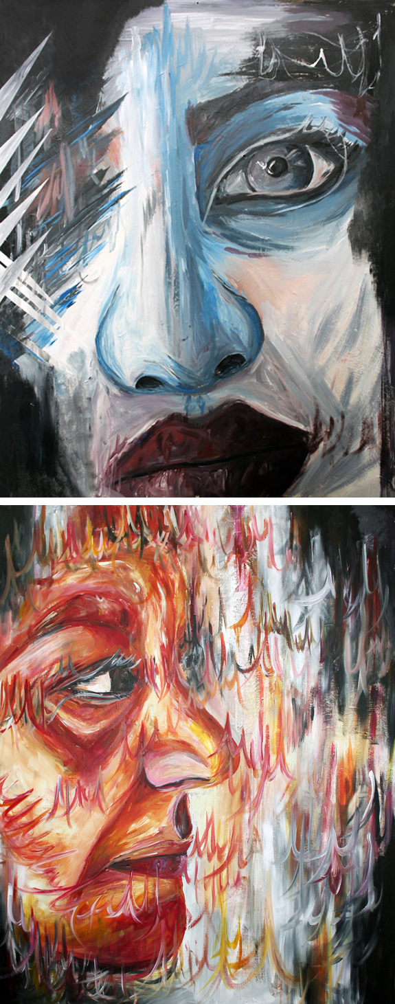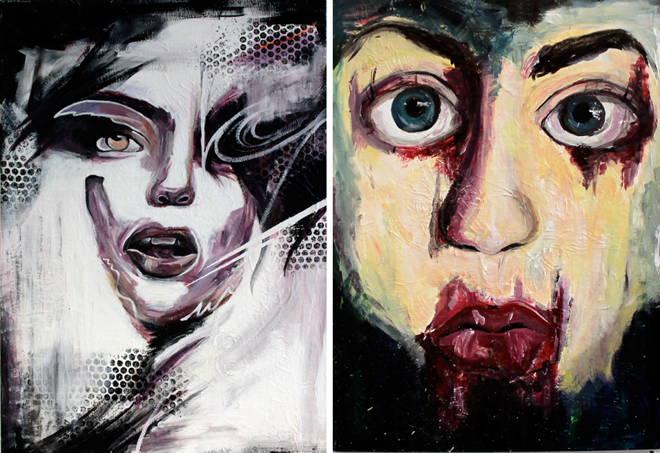 Eleanor Warburton - Reveal I would like my work to illustrate emotions, thoughts and feelings, through the imagery choices, colours, textures and background. I would like my work to be based on portraiture with a meaningful message behind each painting or drawing. I would prefer it to be abstracted as this is my favourite way of painting. I have thought about possible sources for imagery for the project. I want a strong contrast between the portrait element of the work and the abstracted background. I would like the background to relate to the character and story of the person I am portraying, to begin with I have considered taking photographs of people in their working environment. The starting point for me for this project was the trip to London. I visited The National Portrait Gallery, Tate Modern and Mapping the City at Somerset House. The Graffiti night tour inspired me the most for the FMP due to the meaningful messages behind the artwork. The bright colours, the imagery and the placement of the work was interesting. One of my main influences is going to be an artist who I have studied and researched before named Danny O'Connor. He has a graffiti style, as some of his pieces are created using spray paint. His work is also very abstracted and colourful which links to the style I intend to use and it's also a style I like working with.