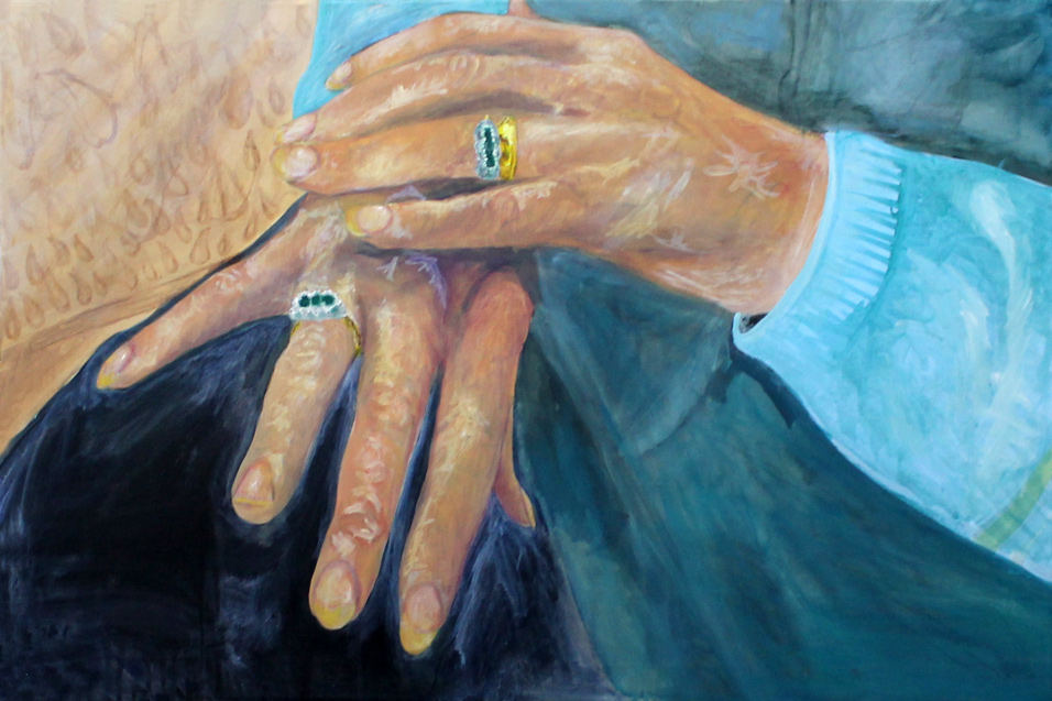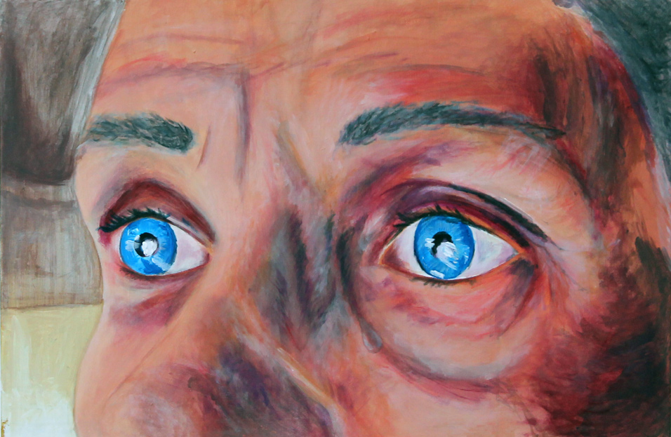 Taome Winter - Granny I have based my project around my granny, as she is an elderly lady who is very interesting. I am close to her so it was simple to gather good quality pictures and information I needed whenever I needed It. Throughout my project I created three final pieces, all being paintings. To create my paintings I used thin layers of acrylic paint to give a frail and gentle feel to the pieces. Over the three paintings it reflects her personality, traits and emotions. The portrait painting shows the personality of my granny. She is a straightforward, honest women and painting her portrait the way it is perfectly reflects her personality. The cropped painting of the eyes is to show her emotions, by looking at the painting she may seem upset however the tear is from happiness and laughter. The third and final piece I created is one of the strongest regarding the concept. It shows the age and character of my granny as she always has a story to tell from past experiences, which has shaped her to be the woman she is today. I have specifically took extra care and detail when painting the rings because these rings show her inner elegance.