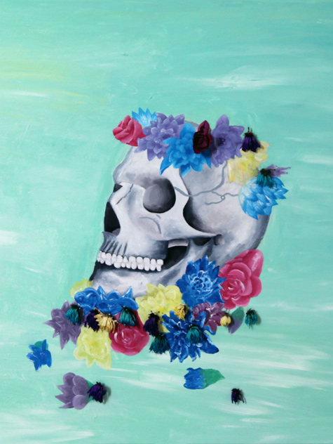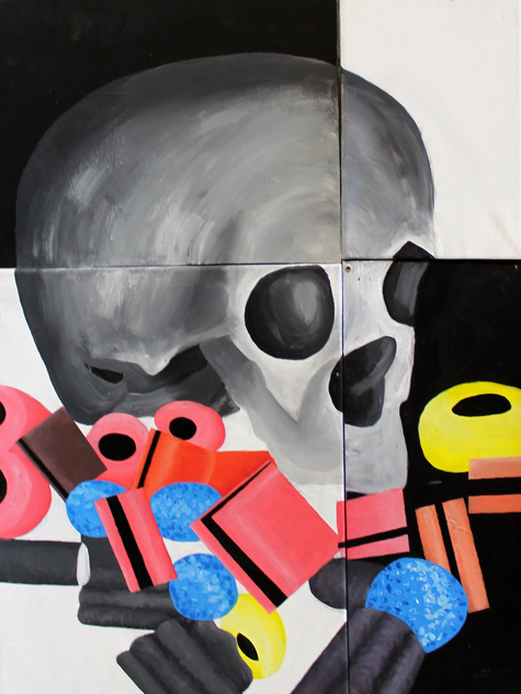 my work on them as I had other interests in mind. I decided to use these as my inspiration because I liked the contrast between the two things I was influenced by, that being bright colours and skulls. I thought that by having grey toned skulls and colourful accents that the painting would create a sense of happiness to in the audience. With this in mind I had to decide what I wanted to be colourful in the picture so I decided that sweets and/or flowers would make a great contrast between the two. For the majority of my paintings have a skull and sweets on it, to keep the paintings related and my last piece has a skull and flowers on it to give a variety of options to the audience. To create my art pieces I used acrylic paint and canvases mostly. In one painting I used two canvases and two wooden boards. My paintings of the skulls are very tonal and textural so I could make them look realistic but expressive. With the flowers and sweets I decided to use lots of different tones of colours but tried to make them very simple in design. I did struggle with staying on top of my work schedule but found ways to complete the pieces without falling behind too much; such as staying behind after lesson and coming into college early to work into my paintings. I was able to achieve a successful project because I was able to change my ideas whenever I felt they needed to be. I felt I had much more control in this project which allowed me to look at different techniques and artists I wouldn’t normally look at. I assessed the success of my project by how other people looked at it. I wanted them to be happier when they saw my paintings. Many people in college who have seen them have mentioned how they feel about them which is they feel better, which was my aim to start with. |